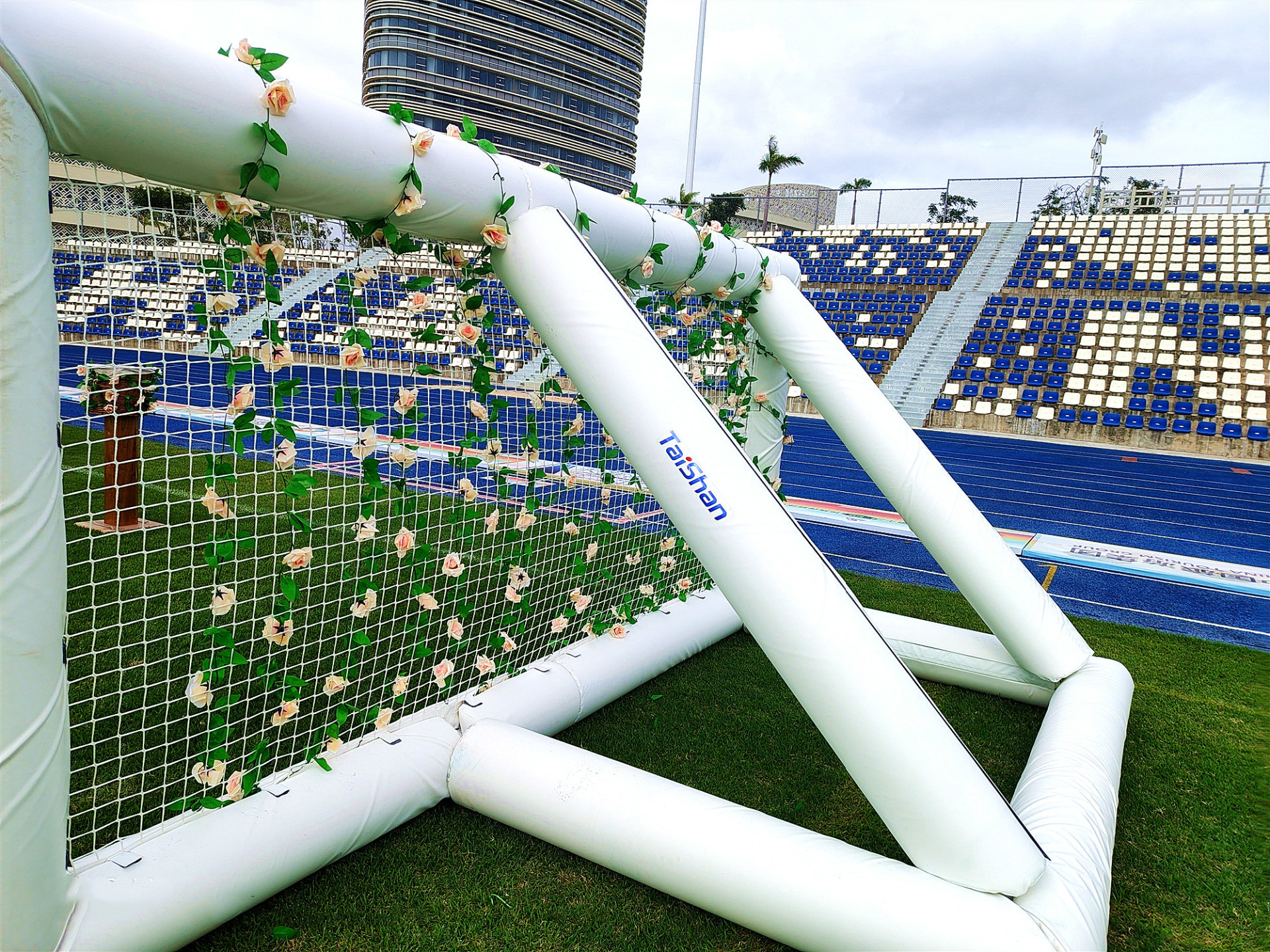 花炮原稱“搶花炮”,是流行于廣西、貴州、云南、湖南等地的一項民間傳統(tǒng)體育活動,已有500多年的歷史。本屆賽事上,端莊、大氣、靚麗的花炮門器材完全由泰山體育自主設(shè)計安裝,為賽事舉辦增添了濃厚氛圍。